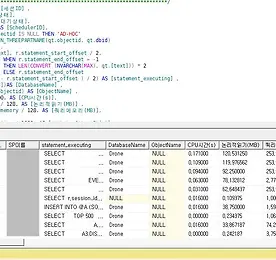 DMV를 이용하여 현재 실행되고 있는 쿼리문 보기 2013.05.04 DBNuri Study 에서 발표하였던 HeavyQuery & LongTime Query 중 하나이며 제가 평소에도 많이 사용하는 Query이며 DB Server에 문제가 생겼을 때나 생기기 전에 해당 Query를 통하여 어느정도 분석이 가능하며 해당 Query를 면밀하게 보다 보면 실행에 문제가 되는 것들이 매트릭스 처럼 눈에 착 ~ !! 와닿는 Query 입니다. 공유되는 Query을 응용하시면 많은 내용을 보실 수 있는 가장 기본이 되는 Query 입니다. USE DBA ; GO /******************************************************************************** * 스칼라 함수 추가 * 현재 서버에서 실행되고 있는 쿼.. 더보기 이전 1 ··· 14 15 16 17 18 19 20 ··· 25 다음